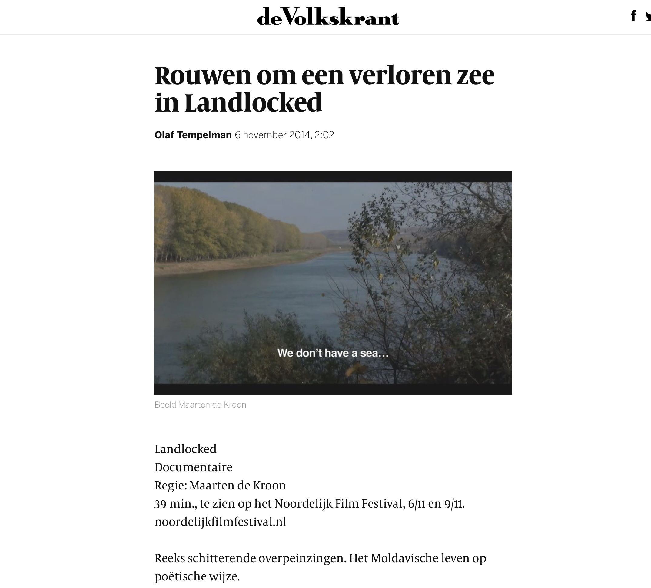 LANDLOCKED (39 minutes, English subtitles) is a documentary film by Maarten de Kroon, made in close cooperation with Nora Dorogan and Denis Bartenev. The film was premiered in june 2014, Tolhuistuin, Amsterdam. Produced by G.O.DOCS / Get Organizized, commissioned and supported by the Dutch Satellietgroep in the context of the international exchange project ‘Now wakes the Sea’, made possible with support of the ECF.