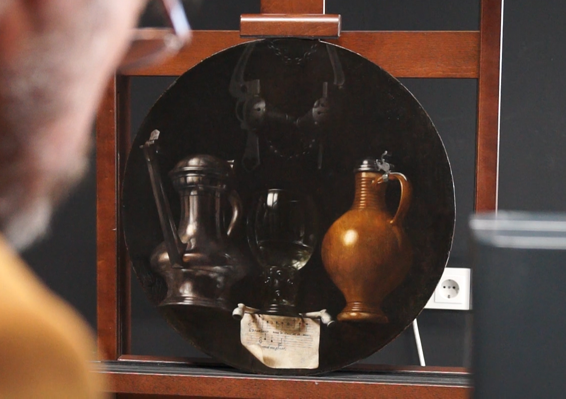 In the end: all his works were either lost, destroyed in Haarlem or sold and disappeared after the brutal death of Charles I. Only one piece survived, and was discovered by pure chance in 1913. The painting, a wooden circular panel, was used for a long time as lid on a raisin barrel in a grocery shop in Enschede, a town in Holland. Nowadays it is part of the collection of the Rijksmuseum. And even after extensive research of his Still life with a bridle, it is not known yet how exactly Torrentius made his painting.